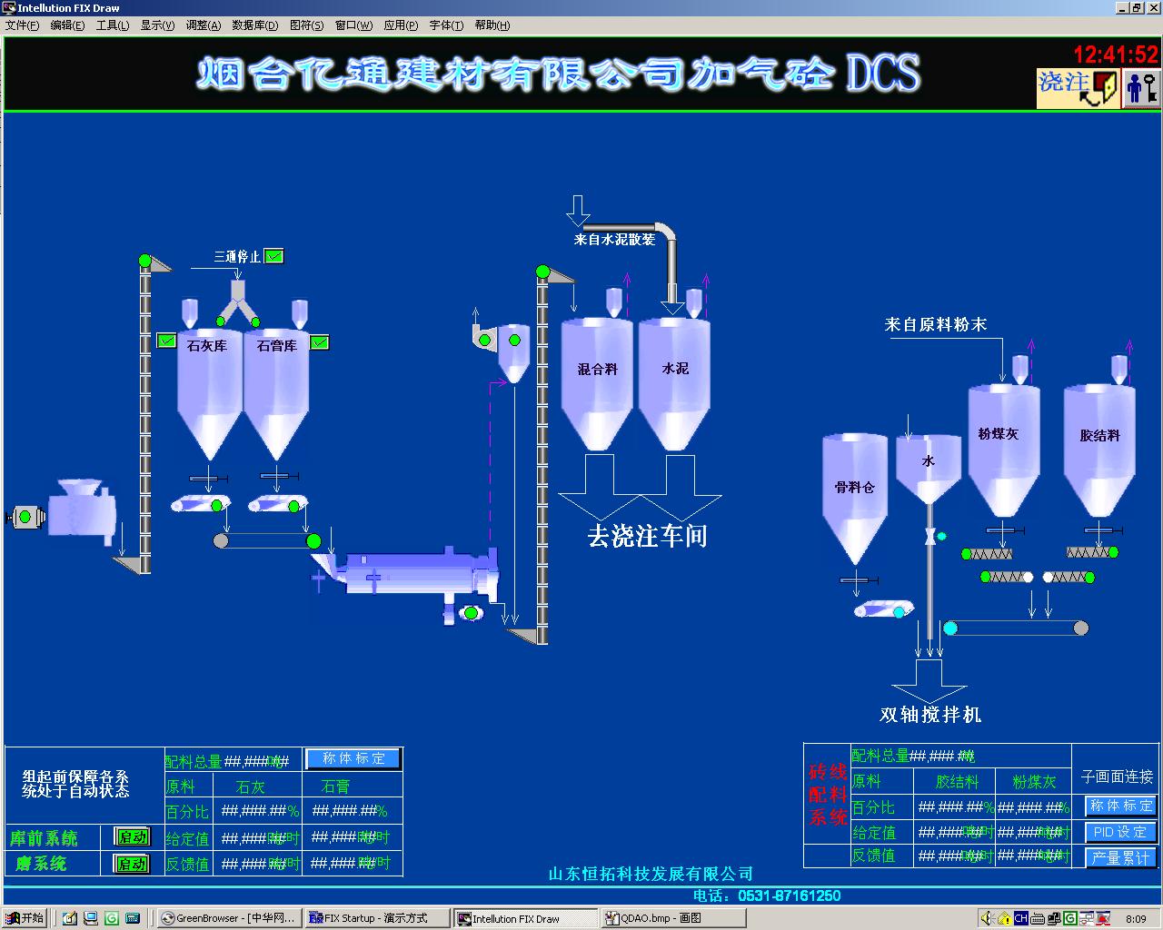 加气砼生产线集散控制系统实现了加气砼生产过程从原料制备到制浆、浇注、皮拱等全线的自动化。