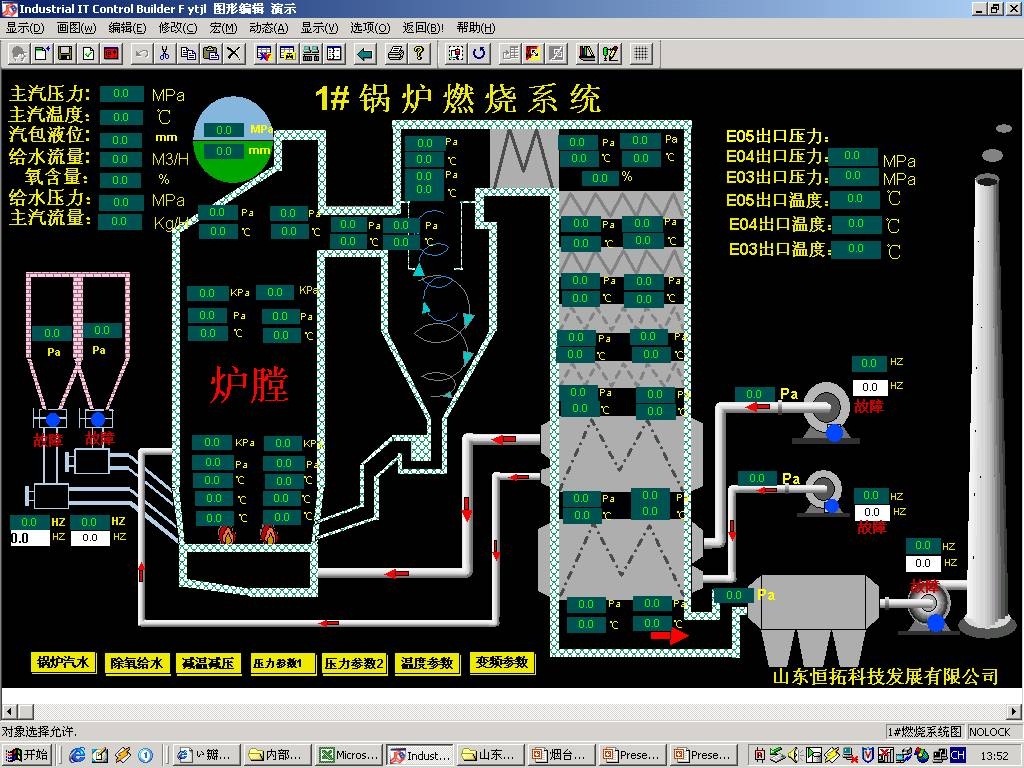 在锅炉等民用行业,恒拓科技为济南大学等大型企事业单位的独立供热中心提供DCS、仪表、执行机构、变频器、低压配电等全套的控制设备。实现风、煤、水的自动控制,温度、压力、流量、液位等工艺数据的自动采集与报表、设备的自动保护等。恒拓科技充分利用在热电、化工方面的有益经验,为供暖系统提供最完善的控制。
