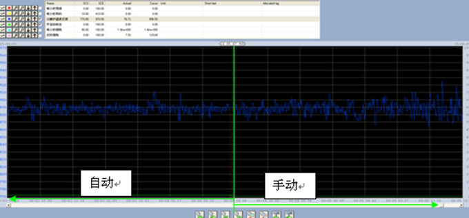 分解炉温度波动曲线,蓝色为分解炉出口温度波动,由蓝色曲线的自动/手动对比可以看出,自动控制状态下,分解炉温度波动较为平稳。