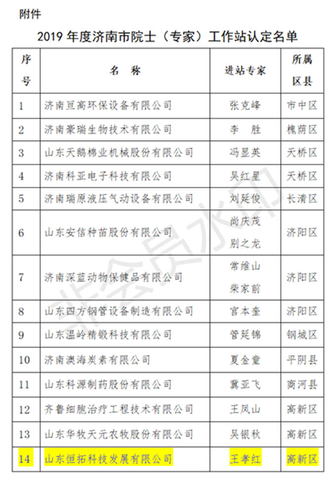近日,我公司经济南市科学技术协会与济南市人才办综合考察论证,认定为2019年第一批院士专家工作站。