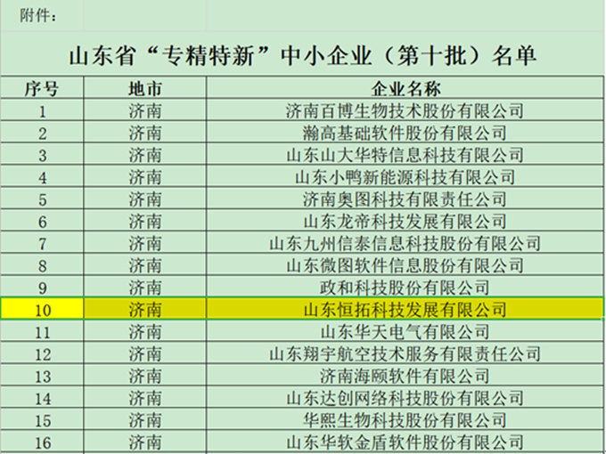近日,我公司经山东省工信厅认定为山东省“专精特新”中小企业。